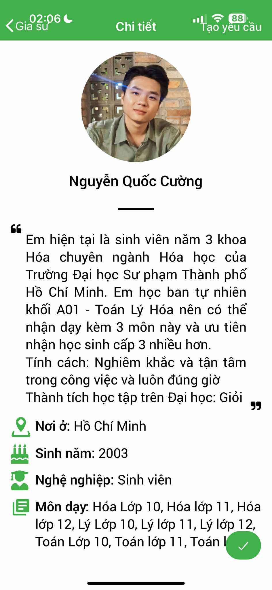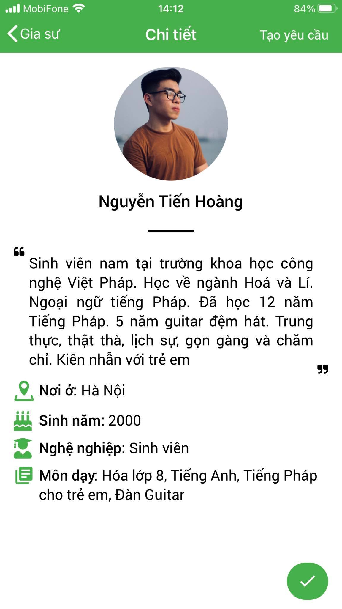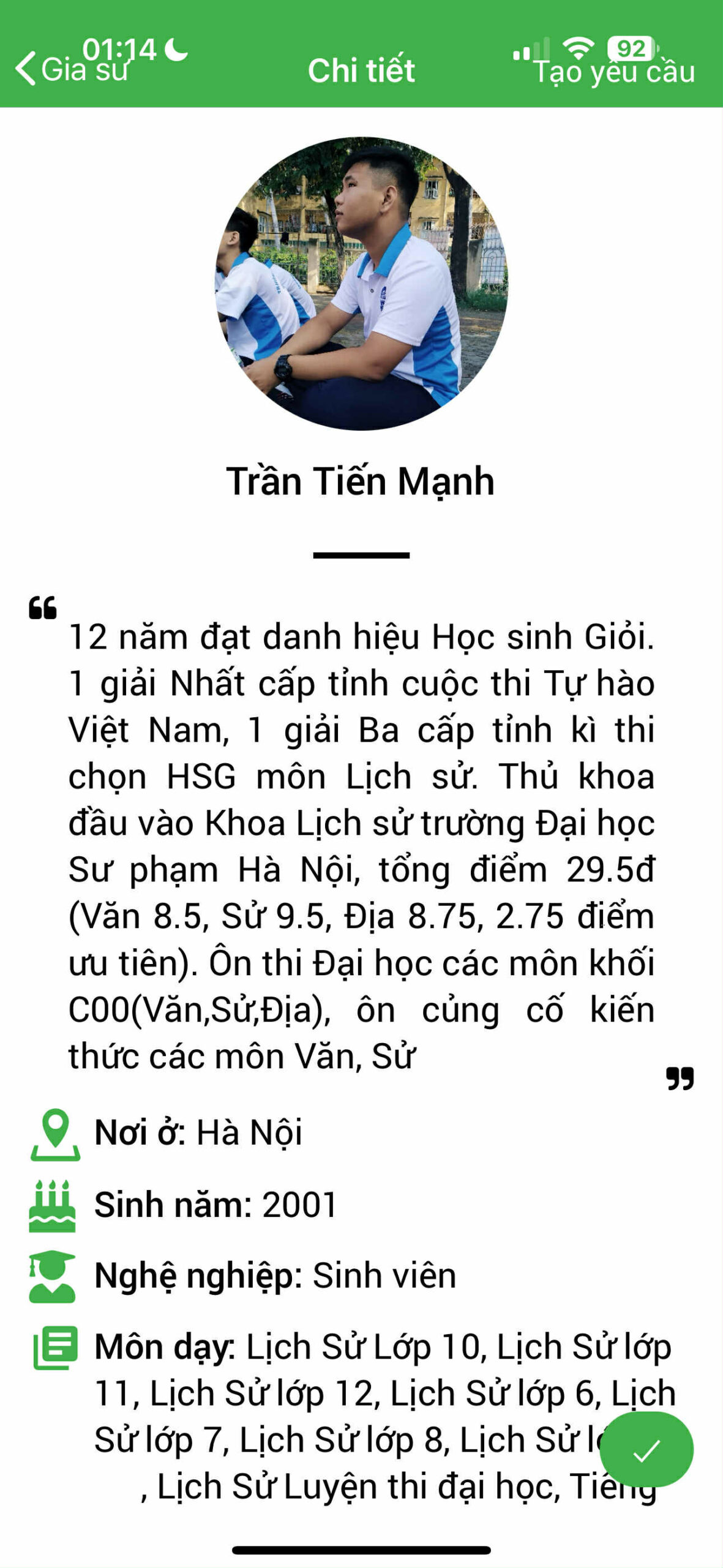 – Thông tin gia sư bảo mật, được xác nhận với PHHS trước