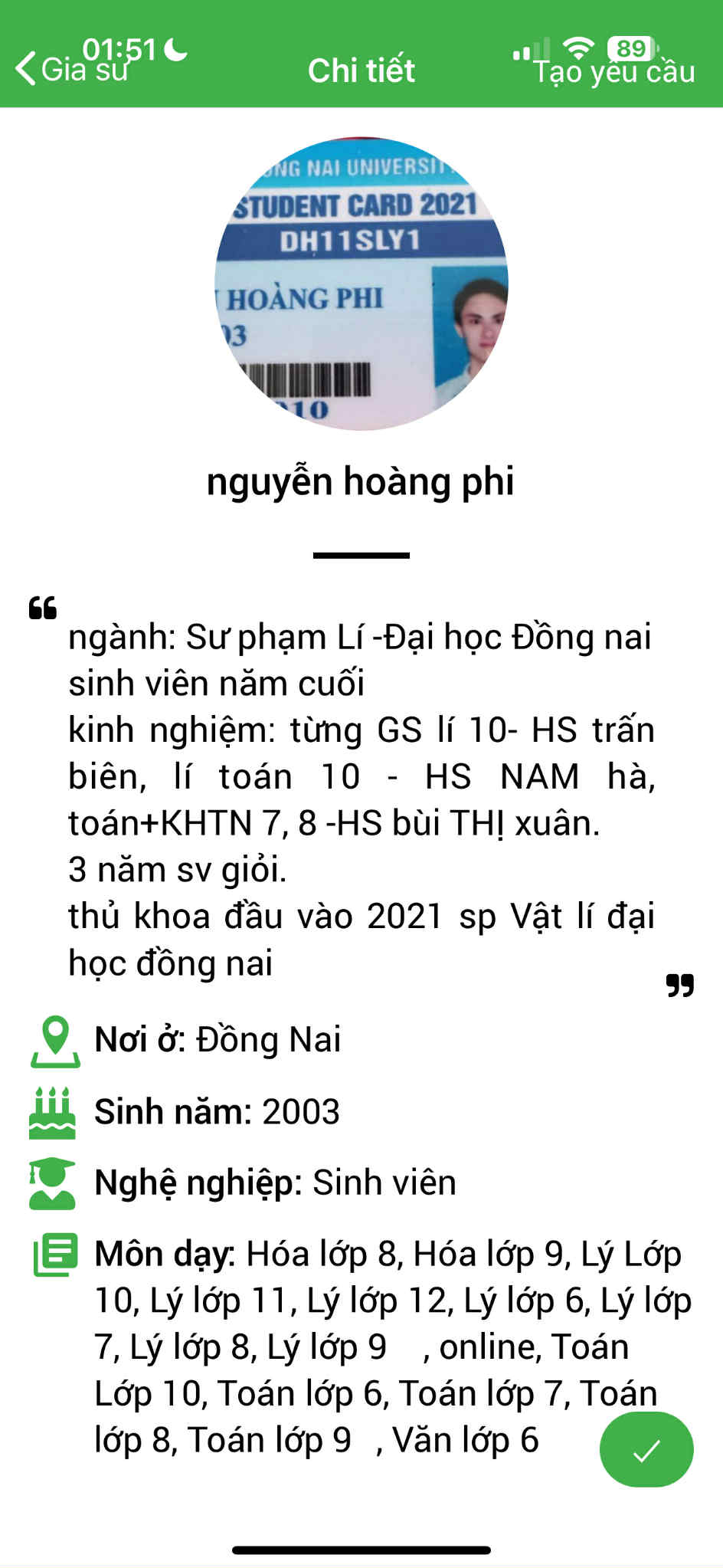 Gia sư Vật Lý THCS 1